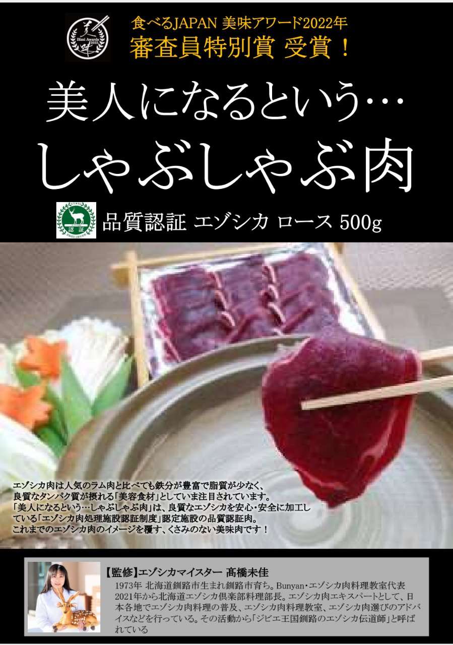 ■原材料:エゾシカ肉 ■産 地:北海道産 ■保存方法:直射日光をさけて常温で保存 ■賞味期限:別途ラベルに記載